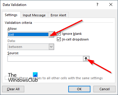Under Allow, click the drop-down arrow and select List from the drop-down list.