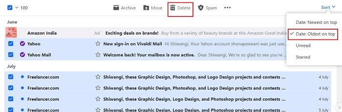 Delete oldest emails on Yahoo