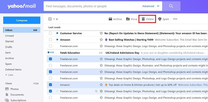 How to delete multiple Emails on Yahoo Mail