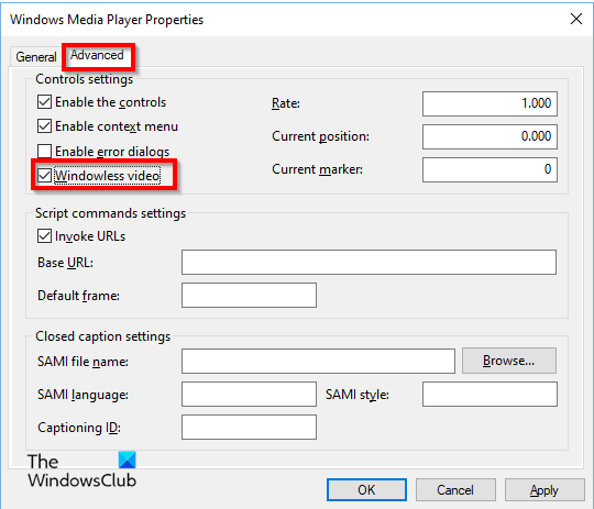 Right-click the Mini Windows Movie Player and select Properties from the context menu.