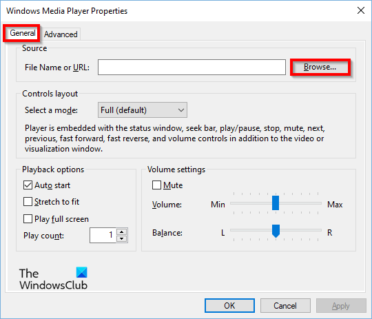 On the General tab, Under Source, you can input an URL of a video or click Browse to input videos from your file.