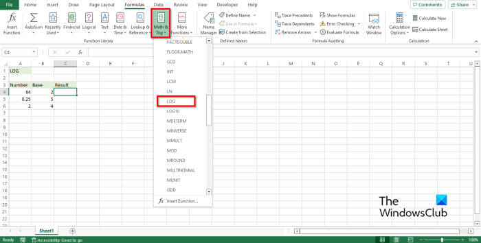 How to use the LOG function in Excel
