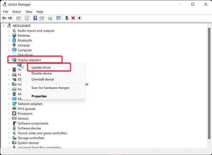 - On the Device Manager window, navigate to the Display adapter option and double-click it.